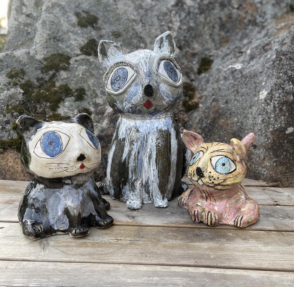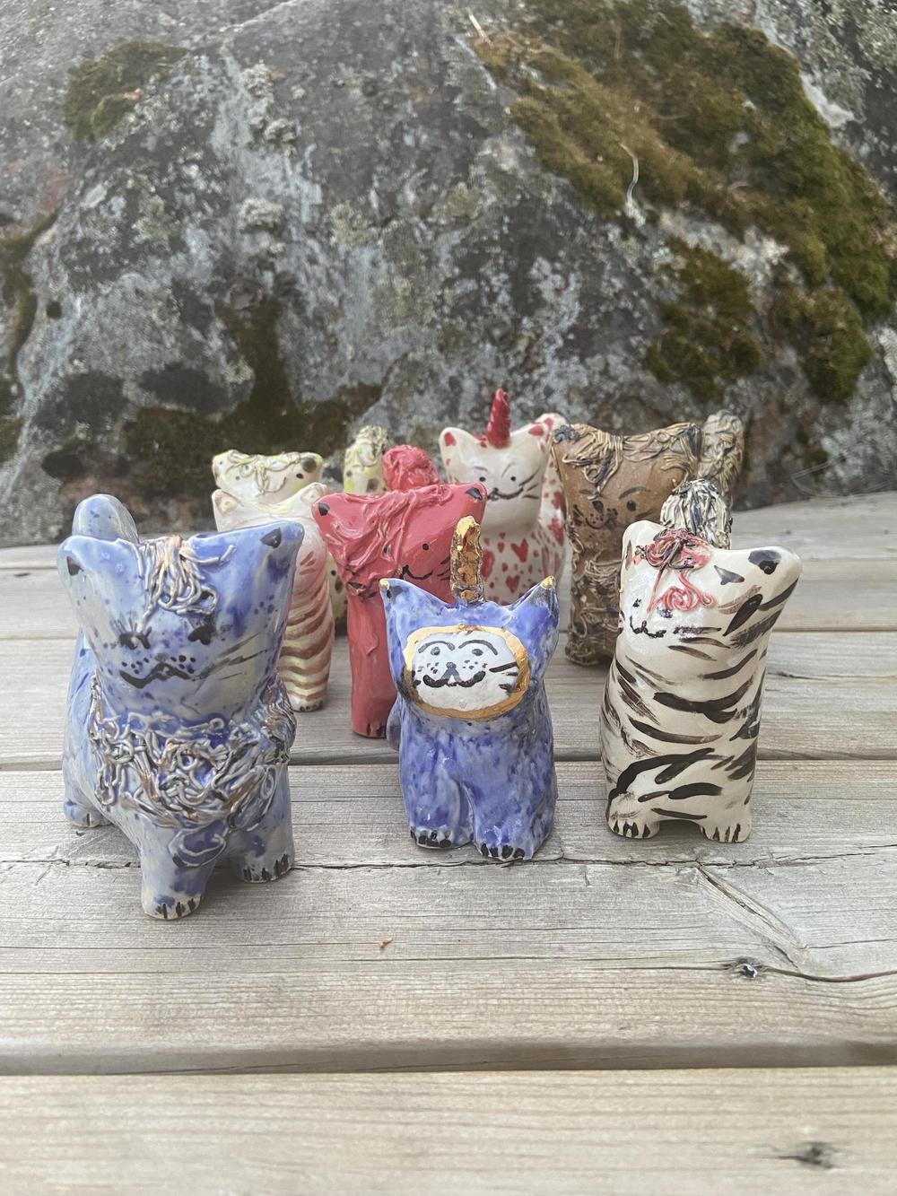 Heli on hurahtanut keramiikkaan. Hän tekee keramiikasta pieniä ja isoja koristekissoja sekä paljon kaikkea muuta.